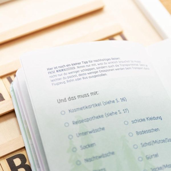 Das Reise-Tagebuch überzeugt in moderner Weltkarten-Optik, mit Checklisten zur Reisevorbereitung und viel Platz zum Einkleben von Erinnerungsstücken. Vorformulierte Fragen erleichtern dabei das Eintragen.