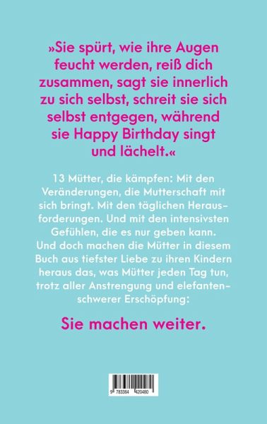 Wir tauchen ein in das Leben von 13 Müttern, die alle ganz verschieden sind und doch eines gemeinsam haben: Neben der grenzenlosen Liebe zu ihren Kindern gibt es auch noch einen anderen Teil in ihnen - den Teil, der hadert. Der Sehnsucht hat oder Angst oder ein schlechtes Gewissen, der wütend ist oder tief verunsichert. Der gegen grenzenlose Erschöpfung und 1 Millionen Infekte kämpft. Der versucht, irgendwie die veränderten Beziehungen zu gestalten - zur Freundin, zum Mann, zur eigenen Mutter. Und nicht zuletzt zu sich selbst. Die Geschichten sind so intensiv wie die Gefühle der 13 Mütter und sie zeigen uns, wie herausfordernd es ist, diese kleinen Menschen beim Großwerden zu begleiten.