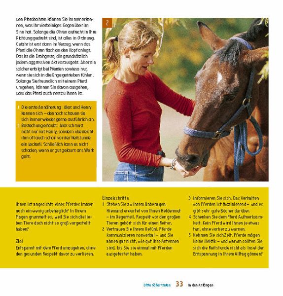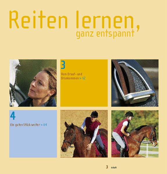 Alle Reitanfänger können aufatmen und sich auf ihre ersten Reitstunden freuen. "Reiten lernen, ganz entspannt" – die Reitlehre mit dem Wohlfühleffekt zeigt Ihnen, wie Sie das Glück auf dem Rücken der Pferde finden, wie Sie sich optimal auf Ihr neues Hobby vorbereiten, was Sie beachten sollten und welche Ratschläge Sie gleich wieder vergessen können. Eine Reitlehre, die Spaß und gute Laune macht! Von der ersten Begegnung mit dem Pferd bis zum großen Ausritt ins Grüne. Information und Emotion pur! Für alle, die mehr wollen als nur auf dem Pferd sitzen Die Trendreitlehre für Reiter von heute.