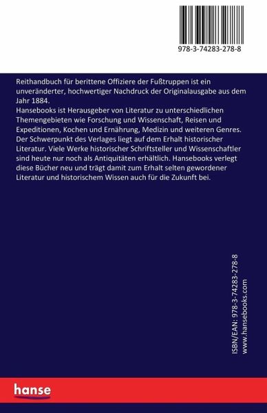 Reithandbuch für berittene Offiziere der Fußtruppen ist ein unveränderter, hochwertiger Nachdruck der Originalausgabe aus dem Jahr 1884.