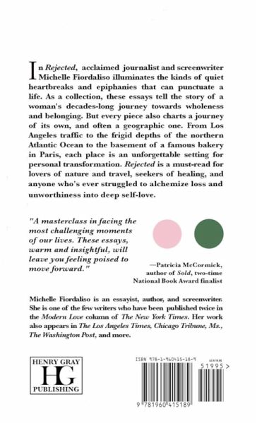 In Rejected, acclaimed journalist and screenwriter Michelle Fiordaliso illuminates the kind of quiet heartbreaks and epiphanies that can punctuate a life. As a collection, these essays tell the story of a woman's decades-long journey towards wholeness and belonging. But every piece also charts a journey of its own, and often a geographic one. From Los Angeles traffic to the basement of a famous bakery in Paris, each place is an unforgettable setting for personal transformation. Rejected is a must-read for lovers of nature and travel, seekers of healing, and anyone who's ever struggled to alchemize loss and unworthiness into deep self-love.