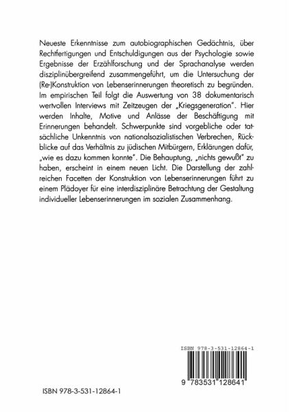Gegenstand dieser Arbeit ist der Zusammenhang von Lebenserinnerungen und Zeitgeschichte in subjektiven Rekonstruktionen miterlebter Epochen. Untersucht werden Aspekte des Umgangs mit der eigenen Vergangenheit, der Funktion von Erinnerungen. Von Interesse ist hier nicht die Frage, ob die Rekonstruktionen wahr oder glaubwürdig sind. Im Zentrum der Unter suchung steht die Frage, welche Inhalte in den erzählten Erinnerungen the matisiert werden, wie diese strukturiert sind, welche subjektive Bedeutung diese Erinnerungen heute haben und welche Funktion bestimmten Erinne rungsgeschichten zukommt. Autobiographische Erinnerungen sind zwar zunächst rein persönli che Angelegenheiten, doch können erzählte Erinnerungen an vergangene Ereignisse nicht losgelöst von zwischenzeitlichen Erfahrungen und von ge sellschaftlichen Entwicklungen gesehen werden. Individuelle Erinnerungen sind eingebettet in die sozialen Zusam menhänge der engeren persönlichen und der weiteren gesellschaftlichen Umwelt detjenigen, die sich erinnern. Zur engeren persönlichen Umwelt zählen die Familie, der Freundeskreis. Mit der weiteren gesellschaftlichen Umwelt sind die Medien gemeint, die allgemein verfiigbare Darstellungen und Deutungsmuster anbieten. Weder die persönliche Umwelt noch der ge sellschaftliche Kontext sind feste Größen. Beide wandeln sich ständig und mit ihnen die individuelle Erinnerung, die von ihrem Rahmen beeinflußt wird, aber auch ihrerseits auf ihn zurückwirkt.