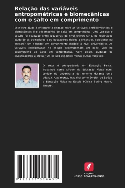Este livro ajuda a encontrar a relação entre as variáveis antropométricas e biomecânicas e o desempenho do salto em comprimento. Uma vez que o estudo foi realizado entre jogadores de nível universitário, os resultados ajudarão os treinadores e os educadores físicos a encontrar, selecionar ou preparar um saltador em comprimento modelo a nível universitário. As variáveis consideradas no estudo desempenham um papel vital no desempenho do salto em comprimento. Além disso, ajudarão os investigadores a efetuar um estudo utilizando muitas outras variáveis.