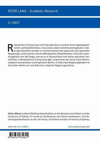 Ausgehend von der Frage, warum es in Deutschland noch keine speziellen Vorschriften zu Related Party Transactions gibt, unternimmt der Autor einen Rechtsvergleich australischen und englischen Rechts. Er deckt den Regelungsbedarf im deutschen Recht auf und diskutiert mögliche Regelungsansätze.