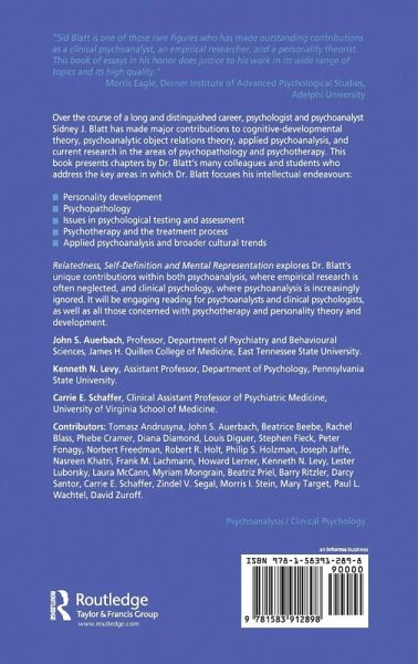 Over the course of a long and distinguished career, psychologist and psychoanalyst Sidney J. Blatt has proposed an integrative theoretical model of personality development, psychopathology, and therapeutic change. This book presents chapters by Dr. Blatt's many colleagues and students that explore questions of relatedness, self-definition, and mental representation. It is a unique contribution to the field of clinical psychology and psychoanalysis.