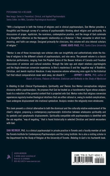 In Relating to God: Clinical Psychoanalysis, Spirituality, and Theism, Dan Merkur presents a clinical alternative to both the dismissal and the culturally relative endorsement of the client's religion, proposing a contemporary psychoanalytic distinction between wholesome spirituality and its symbolic and symptomatic displacements. Spirituality compatible with psychoanalysis is identified with the via negativa, "way of negating," that is found historically in selected Christian and Jewish encounters with God.