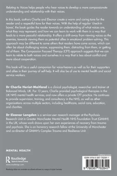 In this book, authors Charlie and Eleanor create a warm and caring tone for the reader and a respectful tone for their voices. With the help of regular 'check-in boxes', the book guides the reader towards an understanding of what voices are, what they may represent, and how we can learn to work with them in a way that leads to a more peaceful relationship. It offers a shift away from viewing voices as the enemies, towards viewing them as potential allies in emotional problem-solving. This approach may be different to some others that readers have come across, which can often be about challenging voices, suppressing them, distracting from them, or getting rid of them. The Compassion Focused Therapy (CFT) approach suggests that we can learn to relate to both voices and ourselves in a way that is less about conflict and more about cooperation.