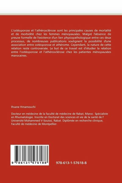 L'ostéoporose et l'athérosclérose sont les principales causes de mortalité et de morbidité chez les femmes ménopausées. Malgré l'absence de preuve formelle de l'existence d'un lien physiopathologique entre ces deux processus, de nombreuses publications soulignent la possibilité d'une association entre ostéoporose et athérome. Cependant, la nature de cette relation reste controversée. Le but de ce travail est d'étudier la relation entre l'ostéoporose et l'athérosclérose chez les patientes ménopausées marocaines.