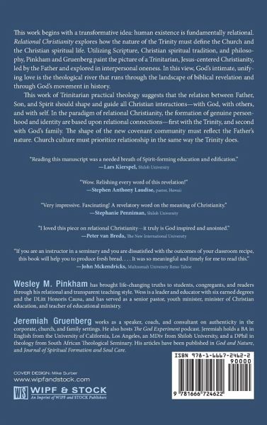This work begins with a transformative idea: human existence is fundamentally relational. Relational Christianity explores how the nature of the Trinity must define the Church and the Christian spiritual life. Utilizing Scripture, Christian spiritual tradition, and philosophy, Pinkham and Gruenberg paint the picture of a Trinitarian, Jesus-centered Christianity, led by the Father and explored in interpersonal oneness. In this view, God's intimate, unifying love is the theological river that runs through the landscape of biblical revelation and through God's movement in history. This work of Trinitarian practical theology suggests that the relation between Father, Son, and Spirit should shape and guide all Christian interactions--with God, with others, and with self. In the paradigm of relational Christianity, the formation of genuine personhood and identity are based upon relational connections--first with the Trinity, and second with God's family. The shape of the new covenant community must reflect the Father's nature. Church culture must prioritize relationship in the same way the Trinity does.