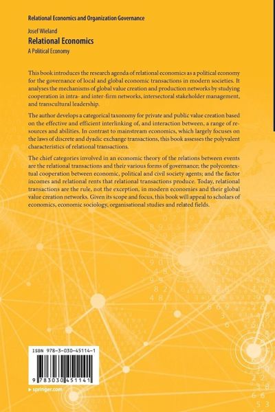This book introduces the research agenda of relational economics as a political economy for the governance of local and global economic transactions in modern societies. It analyses the mechanisms of global value creation and production networks by studying cooperation in intra- and inter-firm networks, intersectoral stakeholder management, and transcultural leadership.