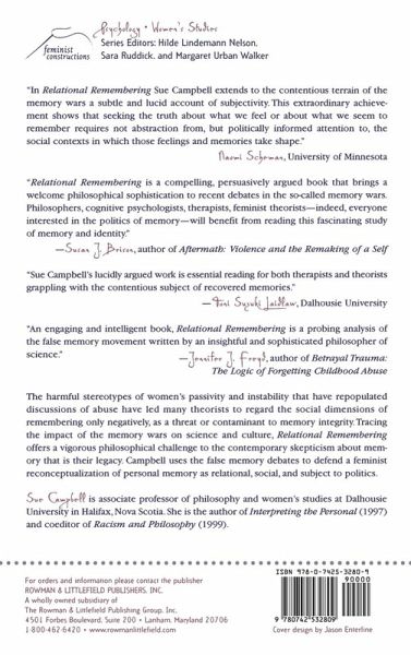 This book offers a feminist philosophical analysis of contemporary public skepticism about women's memories of past harm. It concentrates primarily on writings associated with the False Memory Syndrome Foundation (FMSF), founded in 1992 as a lobby for parents whose adult children have accused them of some abuse after a period of having not remembered it.