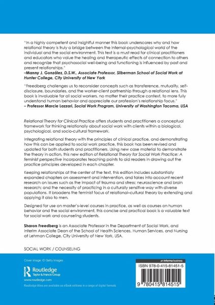 Relational Theory for Clinical Practice offers students and practitioners a conceptual framework for thinking relationally about social work with clients within a biological, psychological, and socio-cultural framework.¿ Integrating relational theory with the principles of clinical practice, and demonstrating how this can be applied to social work practice, this book has been revised and updated to be suitable for students.¿ Using plenty of¿ case material to demonstrate the theory in action, the new edition incorporates teaching points to aid readers in drawing out the practice principles developed in each chapter. Keeping relationships at the center of the text, this edition includes substantially expanded chapters on assessment and intervention, and takes into account recent research on issues such as the impact of trauma and stress; neuroscience and brain research; and the necessity of practicing in a culturally sensitive way with diverse populations.¿ It broadens the feminist focus of relational-cultural theory by extending and applying it to men also. Designed for use on master's level courses in practice, as well as courses on human behavior and the social environment, this concise and practical book is a valuable text for social work and counseling students.¿