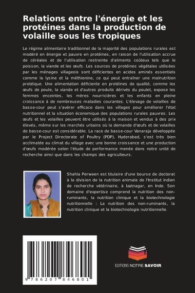 Le régime alimentaire traditionnel de la majorité des populations rurales est modéré en énergie et pauvre en protéines, en raison de l'utilisation accrue de céréales et de l'utilisation restreinte d'aliments coûteux tels que le poisson, la viande et les oeufs. Les sources de protéines végétales utilisées par les ménages villageois sont déficientes en acides aminés essentiels comme la lysine et la méthionine, ce qui peut entraîner une malnutrition protéique. Une alimentation déficiente en protéines de qualité, comme les oeufs de poule, la viande et d'autres produits dérivés du poulet, expose les femmes enceintes, les mères nourricières et les enfants en pleine croissance à de nombreuses maladies courantes. L'élevage de volailles de basse-cour peut s'avérer efficace dans les villages pour améliorer l'état nutritionnel et la situation économique des populations rurales pauvres. Les oeufs et les volailles peuvent être utilisés à la maison et vendus à des prix élevés, même sur les marchés urbains où la demande d'oeufs et de volailles de basse-cour est considérable. La race de basse-cour Vanaraja développée par le Project Directorate of Poultry (PDP), Hyderabad, s'est très bien acclimatée au climat du village avec une bonne croissance et une production d'oeufs modérée selon l'étude de performance menée dans notre unité de recherche ainsi que dans les champs des agriculteurs.
