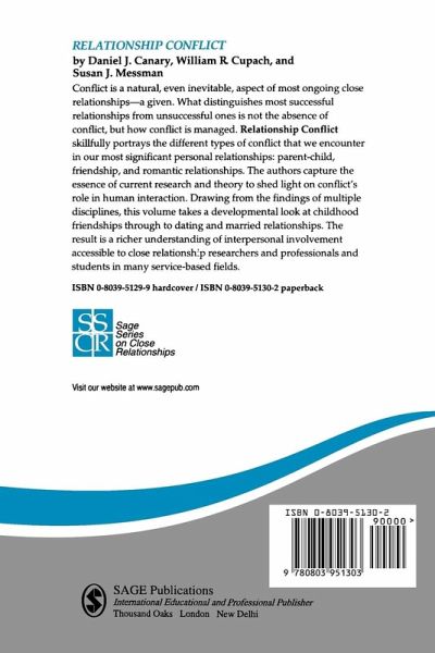 Conflict is a natural and inevitable aspect of most close personal relationships - the crucial issue is not whether it exists, but the way it is managed. Skilfully portraying both developmental or healthy conflict, and destructive or unhealthy conflict, this interdisciplinary volume leads to a better understanding of this vital aspect of relationships. Integrating current research and theory, the authors explore the variation in definitions of interpersonal conflict; review popular survey and observational measures; and discuss specific concerns regarding parent-child relationships, conflict between friends and those romantically involved.
