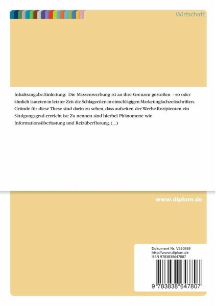 Diplomarbeit aus dem Jahr 2001 im Fachbereich BWL - Marketing, Unternehmenskommunikation, CRM, Marktforschung, Social Media, Note: 1,7, Hochschule Heilbronn (Touristikbetriebswirtschaft), Sprache: Deutsch, Abstract: Inhaltsangabe:Einleitung: Die Massenwerbung ist an ihre Grenzen gestoßen - so oder ähnlich lauteten in letzter Zeit die Schlagzeilen in einschlägigen Marketingfachzeitschriften. Gründe für diese These sind darin zu sehen, dass aufseiten der Werbe-Rezipienten ein Sättigungsgrad erreicht ist: Zu nennen sind hierbei Phänomene wie Informationsüberlastung und Reizüberflutung. Darüber hinaus sind Kunden kritischer geworden und verfügen über die Möglichkeit, via Internet Preise und Leistungen direkt miteinander zu vergleichen. Auf Unternehmensseite sind es Faktoren wie zunehmender Kostendruck, abnehmende Markenloyalität, Konkurrenz durch Me-too-Produkte und die damit zunehmende Austauschbarkeit von Produkten, Konkurrenzdruck im Zuge der Globalisierung, gesättigte Märkte und unberechenbares Käuferverhalten, die mehr Effektivität und Effizienz im Marketing erfordern. Neue Informations- und Kommunikationstechnologien und das Internet haben neue Kommunikationsinstrumente hervorgebracht, die eine individuelle und kostengünstige Ansprache des Kunden ermöglichen.