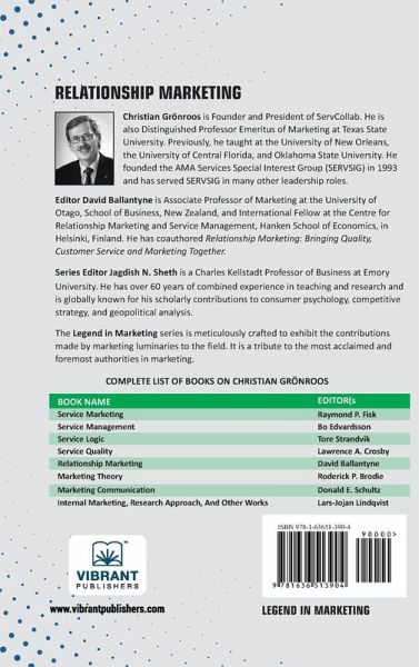 Explore the transformative potential of Relationship Marketing with this comprehensive book by Christian Grönroos, a thought leader in the field of marketing. This essential guide delves into the principles of building and maintaining meaningful relationships with customers, emphasizing the shift from transactional marketing to value-driven, long-term partnerships. Grönroos introduces groundbreaking concepts, such as the role of trust and commitment, the importance of internal marketing, and the integration of customer relationship management systems. Backed by real-world examples and research-based insights, this book offers actionable strategies for businesses to achieve customer loyalty and competitive advantage. Whether you're a student, marketing professional, or business leader, this book equips you with the tools to foster sustainable relationships that benefit both companies and their customers. Embrace the future of marketing with practical insights into relationship-building that drive growth and create lasting value. Start your journey towards marketing excellence today!