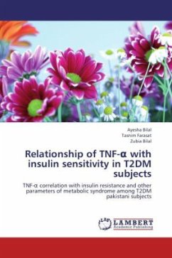 Diabetes mellitus is a multifactorial disorder. Cytokines secreted by the monocyte-macrophage system play a key role in the pathogenesis of type 2 diabetes. Pro-inflammatory cytokine TNF- is believed to have an important role in the progression of diabetes. The present study was conducted to assess the level of TNF- and to find its relationship with insulin sensitivity and other indicators of metabolic syndrome among newly diagnosed type II diabetic subjects. 100 diabetic subjects (age; 48.63±0.92, BMI; 28.51±0.52) were included in the study. Four groups were made on the basis of BMI as normal weight, overweight, moderately obese, severely obese subjects. Different demographic parameters as age, BMI, B.P, personal history and socioeconomic status were recorded. Fasting glucose, random glucose, HbA1c and lipid profile were analyzed by chemistry analyzer. Serum insulin and plasma TNF- levels were assessed by ELISA. Insulin sensitivity and insulin resistance was calculated. ANOVA revealed significant difference between TNF- among different BMI groups (P0.05). On correlation analysis, TNF- was significantly correlated with BMI, WHR and TG (p0.01).