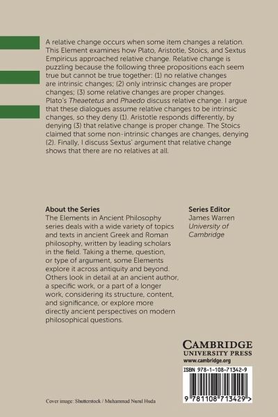 A relative change occurs when some item changes a relation. This Element examines how Plato, Aristotle, Stoics and Sextus Empiricus approached relative change.