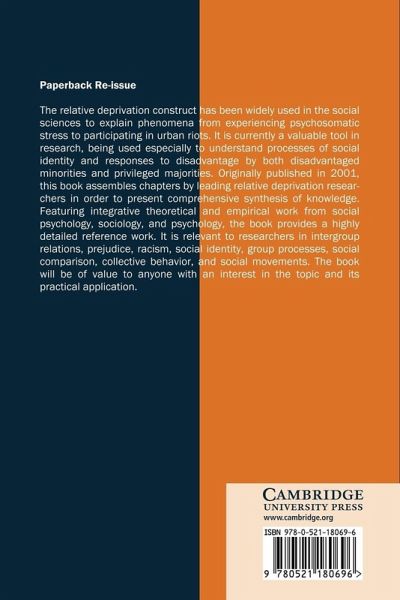 The relative deprivation construct has been widely used in the social sciences to explain phenomena from experiencing psychosomatic stress to participating in urban riots. It is currently a valuable tool in research, being used especially to understand processes of social identity and responses to disadvantage by both disadvantaged minorities and privileged majorities. Originally published in 2001, this book assembles chapters by leading relative deprivation researchers in order to present comprehensive synthesis of knowledge. Featuring integrative theoretical and empirical work from social psychology, sociology, and psychology, the book provides a highly detailed reference work. It is relevant to researchers in intergroup relations, prejudice, racism, social identity, group processes, social comparison, collective behavior, and social movements. The book will be of value to anyone with an interest in the topic and its practical application.