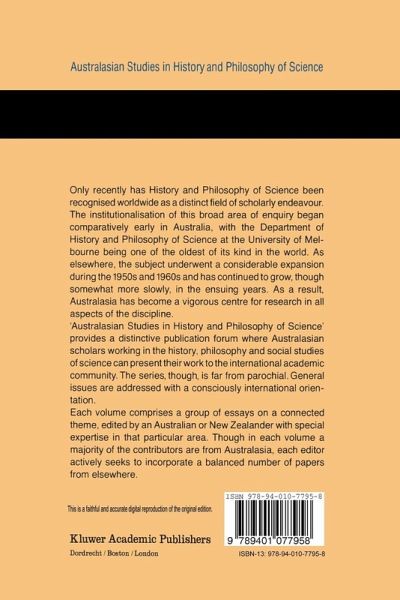 The institutionalization of History and Philosophy of Science as a distinct field of scholarly endeavour began comparatively earl- though not always under that name - in the Australasian region. An initial lecturing appointment was made at the University of Melbourne immediately after the Second World War, in 1946, and other appoint ments followed as the subject underwent an expansion during the 1950s and 1960s similar to that which took place in other parts of the world. Today there are major Departments at the University of Melbourne, the University of New South Wales and the University of Wollongong, and smaller groups active in many other parts of Australia and in New Zealand. "Australasian Studies in History and Philosophy of Science" aims to provide a distinctive publication outlet for Australian and New Zealand scholars working in the general area of history, philosophy and social studies of science. Each volume comprises a group of essays on a connected theme, edited by an Australian or a New Zealander with special expertise in that particular area. Papers address general issues, however, rather than local ones; parochial topics are avoided. Further more, though in each volume a majority of the contributors is from Australia or New Zealand, contributions from elsewhere are by no means ruled out. Quite the reverse, in fact - they are actively encour aged wherever appropriate to the balance of the volume in question.