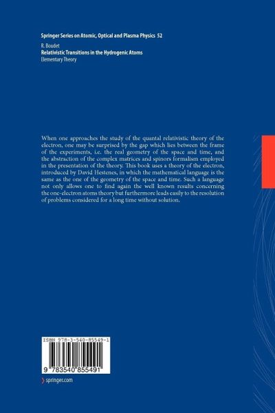 The aim of this volume is twofold. First, it is an attempt to simplify and clarify the relativistic theory of the hydrogen-like atoms. For this purpose we have used the mathematical formalism, introduced in the Dirac theory of the electron by David Hestenes, based on the use of the real Cli?ord algebra Cl(M) associated with the Minkwoski space-time M, that is, the euclidean 4 R space of signature (1,3). This algebra may be considered as the extension to this space of the theory of the Hamilton quaternions (which occupies an importantplaceintheresolutionoftheDiracequationforthecentralpotential problem). The clarity comes from the real form given by D. Hestenes to the electron wavefunctionthatreplaces,inastrictequivalence,theDiracspinor.Thisform is directly inscribed in the frame of the geometry of the Minkwoski space in which the experiments are necessarily placed. The simplicity derives from the uni?cation of the language used to describe the mathematical objects of the theory and the data of the experiments. The mathematics concerning the de?nition and the use of the algebra Cl(M) are not very complicated. Anyone who knows what a vector space is will be able to understand the geometrical implications of this algebra. The lecture will be perhaps more di?cult for the readers already acquainted with the complex formalism of the matrices and spinors, to the extent that the new language will appear di?erent from the one that they have used. But the correspondence between the two formalisms is ensured in the text at each stage of the theory.