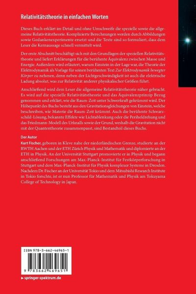 Dieses Buch erklärt im Detail und ohne Umschweife die spezielle sowie die allgemeine Relativitätstheorie. Der erste Abschnitt beschäftigt sich mit den Grundlagen der speziellen Relativitätstheorie und liefert Erklärungen für die berühmte Äquivalenz zwischen Masse und Energie. Außerdem wird erläutert, warum Einstein in der Lage war, die Theorie der Elektrodynamik als Vorlage für sein berühmten Text "Zur Elektrodynamik bewegter Körper" zu nehmen, denn neben der Lichtgeschwindigkeit ist auch die elektrische Ladung absolut, was zur Relativität anderer physikalischer Größen führt.