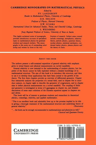 A self-contained exposition of general relativity with an emphasis on tetrad and spinor structures and physical measurements on curved manifolds.\ P\ General relativity is now essential to the understanding of modern physics, but the power of the theory cannot be exploited fully without a detailed knowledge of its mathematical structure. This book aims to implement this structure, and then to develop those applications that have been central to the growth of the theory. The first three chapters provide an overview of differential geometry. Chapter 4 extensively analyzes the properties of a tetrad field, subsequently used in Chapter 5 to introduce spinors, in Chapter 8 to describe the geometry of congruences, and in Chapter 9 to define the physical measurements on a curved manifold. The coupling of fields and geometry is investigated in terms of lagrangeans in Chapter 6, and a detailed discussion of some exact solutions of the Einstein equations appears in Chapters 10 and 11.