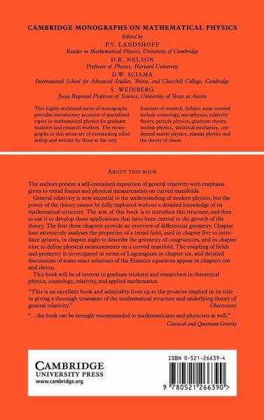 This is a self-contained exposition of general relativity with emphasis given to tetrad and spinor structures and physical measurements on curved manifolds. General relativity is now essential to the understanding of modern physics, but the power of the theory cannot be fully explained without a detailed knowledge of its mathematical structure. The aim of this book is to introduce this structure, and then to use it to develop those applications that have been central to the growth of the theory. An overview of differential geometry is provided and properties of a tetrad field are then extensively analysed. These are used to introduce spinors, to describe the geometry of congruences and define the physical measurements on a curved manifold. The coupling of fields and geometry is investigated in terms of Lagrangeans and a detailed discussion of some exact solutions of the Einstein equations are provided.