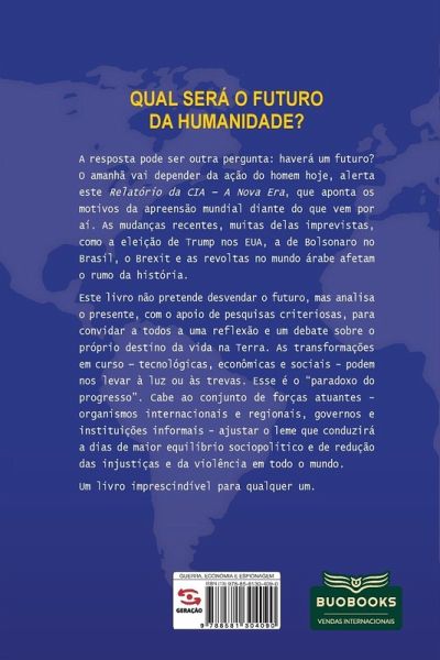 QUAL SERÁ O FUTURO DA HUMANIDADE? A resposta pode ser outra pergunta: haverá um futuro? O amanhã vai depender da ação do homem hoje, alerta este Relatório da CIA ¿ A Nova Era, que aponta os motivos da apreensão mundial diante do que vem por aí. E atenção: o relatório previu até mesmo a possível eclosão de uma pandemia causada por um vírus até 2023. Chegou antes! As mudanças recentes, muitas delas imprevistas, como a pandemia do Coronavírus, a eleição de Trump nos EUA, a de Bolsonaro no Brasil, o Brexit e as revoltas no mundo árabe afetam o rumo da história. Este livro analisa o presente, com o apoio de pesquisas criteriosas, para convidar a todos a uma reflexão e um debate sobre o futuro próximo e o destino da vida na Terra. As transformações em curso ¿ tecnológicas, sanitárias, climatológicas, econômicas e sociais ¿ podem nos levar à luz ou às trevas. Esse é o ¿paradoxo do progressö. Cabe ao conjunto de forças atuantes ¿ organismos internacionais e regionais, governos e instituições informais ¿ ajustar o leme que conduzirá a dias de maior equilíbrio sociopolítico e de redução das injustiças e da violência em todo o mundo. Um livro imprescindível para qualquer um.