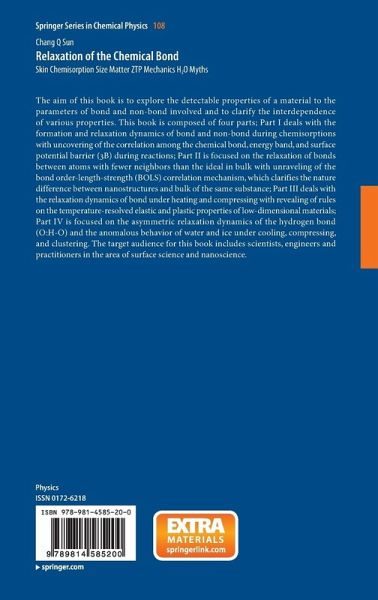 From the Contents: Part I Molecular Chemisorption.- Introduction.- Foundations.- STM and LEED: Atomic Valences and Bond Geometry.- Part II Atomic Undercoordination.- Introduction.- Principles: BOLS and NEP.- Surface Relaxation and Nanosolid Densification.- Part III Mechano and Thermo Activation.- Introduction.- Principles.- Liquid and Solid Surfaces.- Part IV Water and Ice.- Introduction.- Principles: Hypotheses and Expectations.
