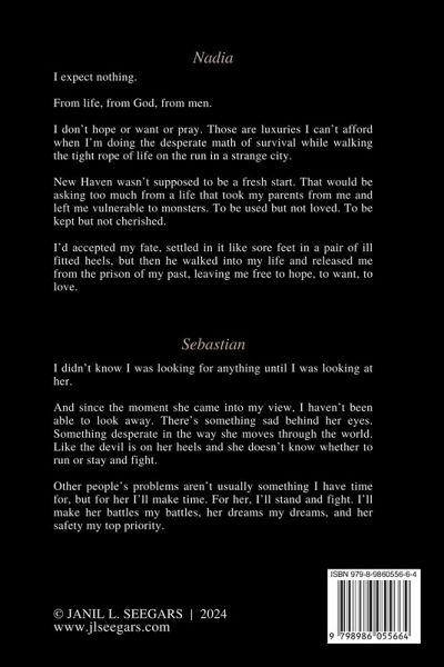 He's the only one she trusts. She's the only one he wants. Nadia: I expect nothing. From life, from God, from men. I don't hope or want or pray. Those are luxuries I can't afford when I'm doing the desperate math of survival while walking the tight rope of life on the run in a strange city. New Haven wasn't supposed to be a fresh start. That would be asking too much from a life that took my parents from me and left me vulnerable to monsters. To be used but not loved. To be kept but not cherished. I'd accepted my fate, settled in it like sore feet in a pair of ill fitted heels, but then he walked into my life and released me from the prison of my past, leaving me free to hope, to want, to love. Sebastian: I didn't know I was looking for anything until I was looking at her. And since the moment she came into my view, I haven't been able to look away. There's something sad behind her eyes. Something desperate in the way she moves through the world. Like the devil is on her heels and she doesn't know whether to run or stay and fight. Other people's problems aren't usually something I have time for, but for her I'll make time. For her, I'll stand and fight. I'll make her battles my battles, her dreams my dreams, and her safety my top priority.