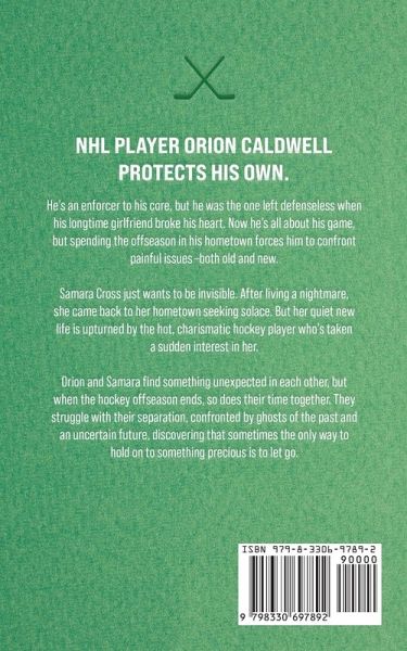 NHL player Orion Caldwell protects his own. He's an enforcer to his core, but he was the one left defenseless when his longtime girlfriend broke his heart. Now he's all about his game, but spending the offseason in his hometown forces him to confront painful issues -both old and new. Samara Cross just wants to be invisible. After living a nightmare, she came back to her hometown seeking solace. But her quiet new life is upturned by the hot, charismatic hockey player who's taken a sudden interest in her. Orion and Samara find something unexpected in each other, but when the hockey offseason ends, so does their time together. They struggle with their separation, confronted by ghosts of the past and an uncertain future, discovering that sometimes the only way to hold on to something precious is to let go.