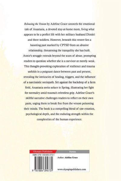 Releasing the Venom by Adeline Grace unravels the emotional tale of Anastasia, a devoted stay-at-home mom, living what appears to be a perfect life with her military husband Dimitri and three toddlers. However, beneath this veneer lies a haunting past marked by CPTSD from an abusive relationship, threatening the tranquility she has built. Annie's struggle extends beyond the scars of abuse, prompting readers to question whether she is a survivor or merely weak. This thought-provoking exploration of resilience and trauma unfolds in a poignant dance between past and present, revealing the intricacies of healing, triggers, and the influence of a narcissistic sociopath. Set against the backdrop of a farm field, Anastasia seeks solace in Spring, illustrating her fight for normalcy amid trauma's relentless grip. Adeline Grace's skillful narrative challenges readers to reflect on their own pasts, urging them to break free from the venom poisoning their minds. The book is a compelling blend of raw emotion, psychological depth, and the enduring strength within the complexities of the human experience.
