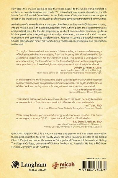 How does the church's calling to take the whole gospel to the whole world manifest in contexts of poverty, injustice, and conflict? In this collection of essays, drawn from the 7th Micah Global Triennial Consultation in the Philippines, Christians from across the globe reflect on the church's role in alleviating suffering and developing transformed communities. At the heart of these reflections is the topic of resilience and its role in Christian community, integral mission, and faith-based development work. Offering both theological frameworks and practical tools for the development of resilient communities, this book ignites a biblical passion for integrating justice and proclamation, witness and social concern, evangelism and community transformation. Relentless Love is a powerful reminder of Christ's calling to join him in his work to bring wholeness, reconciliation, and redemption to the earth.