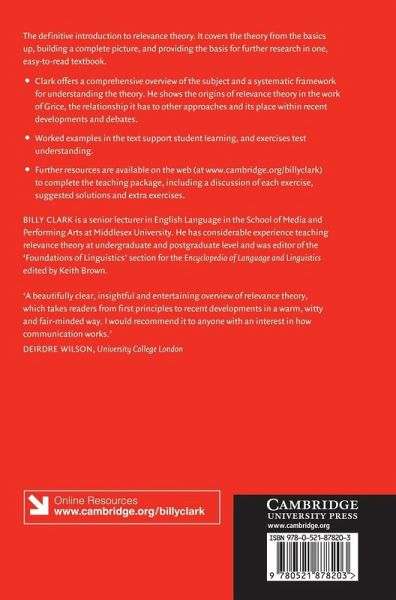 The definitive introduction to relevance theory. It covers the theory from the basics up, building a complete picture and providing the basis for further research in one, easy-to-read textbook. Worked examples in the text support student learning and exercises test understanding.