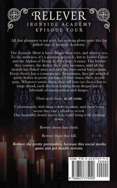 All that glimmers is not gold, but nothing glows quite like the gilded cage of Ironside Academy. The Ironside Show is back. Bigger than ever, and shinier, too. To the audience, it's a glorious spectacle, but to Isobel Carter and the Alphas of Dorm A, it's a trap. A maze. The further they venture, the darker their path becomes, until all the tarnish has flaked away and only the bare metal bars remain. Every choice has a consequence. Sometimes, they are awarded pretty bribes in pretty packages. Other times, there is only pain. Whatever awaits them, they will have no choice but to forge ahead, each decision leading them deeper into a labyrinth of manipulation and danger. Their goal: fame, at all costs. Unfortunately, with fame comes scrutiny, and there's one secret they can't afford to reveal. One beautiful, brutal secret that could bring it all crashing down. Beware those that climb. Beware those that fall. Beware the pretty pretenders, because this social media game just got deadly serious.