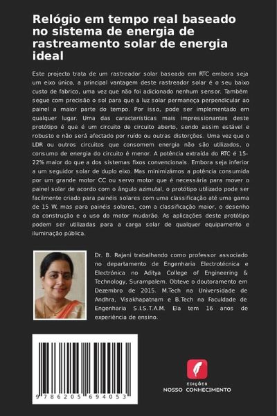 Este projecto trata de um rastreador solar baseado em RTC embora seja um eixo único, a principal vantagem deste rastreador solar é o seu baixo custo de fabrico, uma vez que não foi adicionado nenhum sensor. Também segue com precisão o sol para que a luz solar permaneça perpendicular ao painel a maior parte do tempo. Por isso, pode ser implementado em qualquer lugar. Uma das características mais impressionantes deste protótipo é que é um circuito de circuito aberto, sendo assim estável e robusto e não será afectado por ruído ou outras distorções. Uma vez que o LDR ou outros circuitos que consomem energia não são utilizados, o consumo de energia do circuito é menor. A potência extraída do RTC é 15-22% maior do que a dos sistemas fixos convencionais. Embora seja inferior a um seguidor solar de duplo eixo. Mas minimizámos a potência consumida por um grande motor CC ou servo motor que é necessária para mover o painel solar de acordo com o ângulo azimutal, o protótipo utilizado pode ser facilmente criado para painéis solares com uma classificação até uma gama de 15 W, mas para painéis solares, com a classificação maior, o desenho da construção e o uso do motor mudarão. As aplicações deste protótipo podem ser utilizadas para a carga solar de qualquer equipamento e iluminação pública.