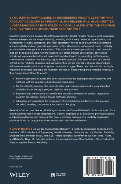 Reliability Culture: How Leaders Build Organizations that Create Reliable Products, will help readers develop a deep understanding of reliability, including what it really means for organizations, how to implement it in daily operations, and, most importantly, how to build a culture that is centered around reliability and can generate impressive profits. When senior leaders work toward reliability, product details often get lost in translation. This book will enable organizations to overcome this problem by showing leaders how their actions truly affect product development. They will be introduced to new methods that will immediately enable them to have carefully crafted product specifications translated into matching, highly reliable products. This book will also be a breath of fresh air for reliability engineers and managers; they will see their daily struggle identified and will learn new methods for advancing their passionate struggle. These new methods will be clearly explained, so readers can begin the important process of incorporating and promoting reliability in their organizations. Benefits of this book include: