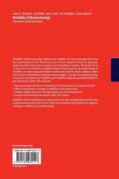 Reliability of Microtechnology discusses the reliability of microtechnology products from the bottom up, beginning with devices and extending to systems. The book's focus includes but is not limited to reliability issues of interconnects, the methodology of reliability concepts and general failure mechanisms. Specific failure modes in solder and conductive adhesives are discussed at great length. Coverage of accelerated testing, component and system level reliability, and reliability design for manufacturability are also described in detail.