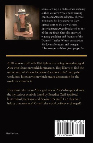 AJ Bluehorse and Leslie Kicklighter are facing down demi-god Alex who's bent on world domination. They'll have to find the second staff of Viracocha before Alex does or he'll warp the world into his own vision which means destruction for the world as we know it. They must take on an Aztec god, one of Alex's disciples; decode the mysterious symbols found by Benedict Cecil Spafford hundreds of years ago, and discover the staff. Can they do it before time runs out? Or will the world be forever changed? This is book four (the final book) in this award-winning series! Book 1: Toy of the Gods - Leslie Kicklighter agrees to go on a simple expedition, a tour of the Amazon on a luxurious, prototype hovercraft boat that promises to revolutionize travel. The only problem is an Inca god wants to use the passengers for his own agenda: finding someone to take over the mantle of his powers. Captain John Holbrook is having nothing but trouble because someone keeps sabotaging him. He doesn't trust Leslie and he definitely doesn't trust the local entrepreneur, Simon Leverence. The Inca god, Viracocha, takes over the body of a man named Sun CAstel, one of the tour guides, in order to get to know the passengers. When he can't figure out who is worthy of his powers, he strikes down the ship and strands everyone in the jungle, forcing them all to make their way through the jungle on foot. * * * Book 2: Gamble of the Gods - AJ Bluehorse was born on the Navajo Nation reservation in northwestern New Mexico. Her mother moved them out to New York City when AJ was little, and AJ is loving her New York apartment and job as a freelance programmer. Now she's being asked to come back to the Navajo reservation to help with a high-tech problem at the local casino. Someone's steeling a lot of money, and even with the casino's new computer system, they can't seem to track down the thief. She'd like to stay in New York and learn more about her new powers, but the call from her cousin to help in New Mexico is too great. Along the way she adopts some dogs, works with her boyfriend to learn what her powers can do, and investigates to hopefully find not only the person stealing money, but also a murderer who killed a young boy. * * * Book 3: Castoffs of the Gods - Leslie Kicklighter is distraught to realize that John Holbrook has gone missing in the Amazon during his search for his distant relative's last resting place. Leslie mounts a rescue effort and invites AJ Bluehorse along. AJ finds herself called back to the jungle as each night brings dreams of a hidden ancient city. Accompanying them is an old friend, Miguel, as well as two unknowns, Alex and Anya. Every person on this trip has their own reasons to be out in the jungle, and many don't care if they find John or not.