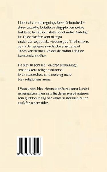 I løbet af vor tidsregnings første århundreder skrev ukendte forfattere i Ægypten en række traktater, tænkt som støtte for et indre, åndeligt liv. Disse skrifter kom til at gå under den ægyptiske visdomsgud Thoths navn, og da den græske standardoversættelse af Thoth var Hermes, kaldes de endnu i dag de hermetiske skrifter. De blev til som led i en bred strømning i senantikkens religionshistorie, hvor menneskets sind mere og mere blev religionens arena. I Vesteuropa blev Hermesskrifterne først kendt i renæssancen, men navnlig deres syn på naturen som guddommelig har været til stor inspiration også for senere tider.