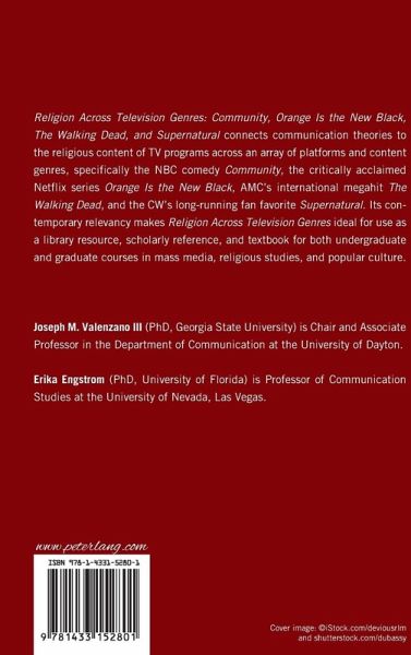 Religion Across Television Genres: Community, Orange Is the New Black, The Walking Dead, and Supernatural connects communication theories to the religious content of TV programs across an array of platforms and content genres, specifically the NBC comedy Community, the critically acclaimed Netflix series Orange Is the New Black, AMC's international megahit The Walking Dead, and the CW's long-running fan favorite Supernatural. Its contemporary relevancy makes Religion Across Television Genres ideal for use as a library resource, scholarly reference, and textbook for both undergraduate and graduate courses in mass media, religious studies, and popular culture.