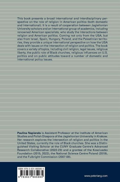 This book presents a broad international and interdisciplinary perspective on the role of religion in American politics (both domestic and international). It is a result of cooperation between Jagiellonian University scholars and an international group of academics, including renowned American specialists, who study the interactions between religion and American politics. Coming not only from the USA, but also from Israel, Spain, Hungary, Poland, and the Palestinian territories, they provide a unique international perspective on how the USA deals with issues on the intersection of religion and politics. The book covers a variety of topics, including civil religion, legal issues, religious liberty, the public role of Black churches, religious influences on U.S. politics and on public attitudes toward a number of domestic and international policy issues.
