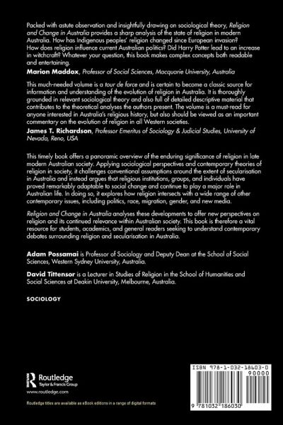 Packed with astute observation and insightfully drawing on sociological theory, Religion and Change in Australia provides a sharp analysis of the state of religion in modern Australia. How has Indigenous peoples' religion changed since European invasion? How does religion influence current Australian politics? Did Harry Potter lead to an increase in witchcraft? Whatever your question, this book makes complex concepts both readable and entertaining.