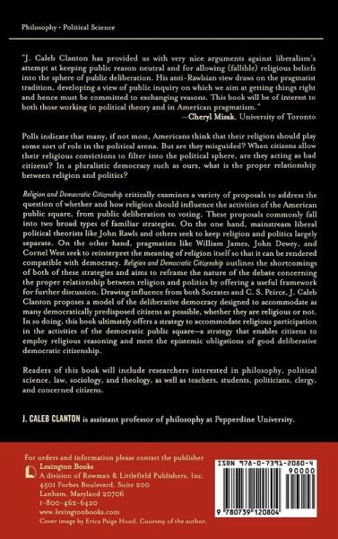 This book addresses heated debate among political thinkers concerned with the role of religious reasoning in the deliberation and justification of public policy and voting. The author critically examines various arguments drawn from mainstream liberal political theory, political theology, and American pragmatism, and offers a unique proposal for thinking through this issue.
