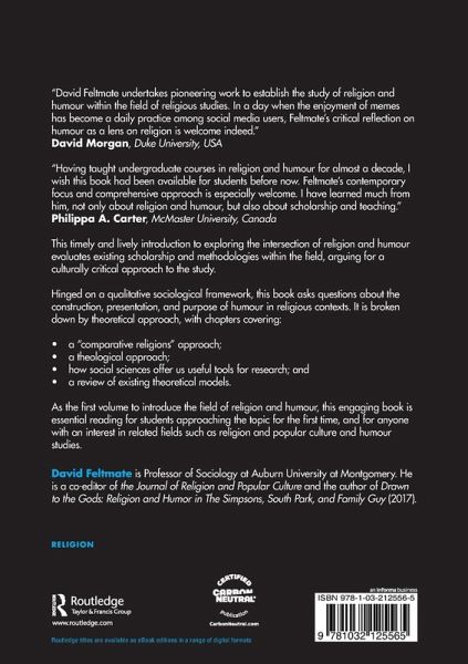 "David Feltmate undertakes pioneering work to establish the study of religion and humour within the field of religious studies. In a day when the enjoyment of memes has become a daily practice among social media users, Feltmate's critical reflection on humour as a lens on religion is welcome indeed."