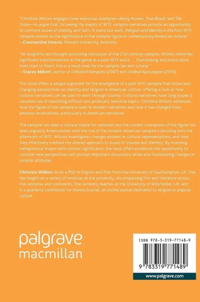 This book offers a unique argument for the emergence of a post-9/11 vampire that showcases changing perspectives on identity and religion in American culture, offering a look at how cultural narratives can be used to work through trauma. Cultural narratives have long played a valuable role in mediating difficult and politically sensitive topics. Christina Wilkins addresses how the figure of the vampire is used in modern narratives and how it has changed from previous incarnations, particularly in American narratives.