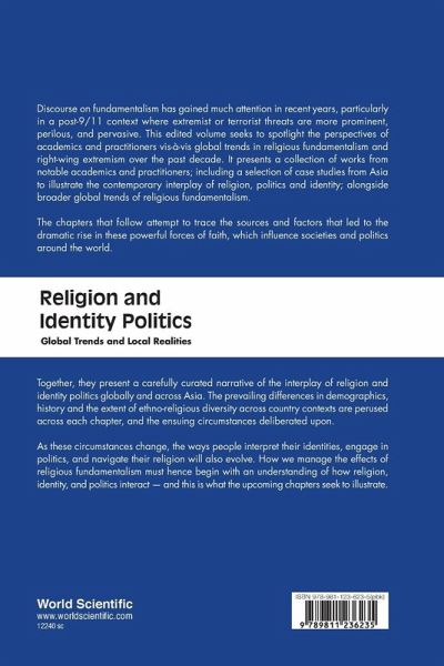 Discourse on fundamentalism has gained much attention in recent years, particularly in a post-9/11 context where extremist or terrorist threats are more prominent, perilous, and pervasive. This edited volume seeks to spotlight the perspectives of academics and practitioners vis-à-vis global trends in religious fundamentalism and right-wing extremism over the past decade. It presents a collection of works from notable academics and practitioners; including a selection of case studies from Asia to illustrate the contemporary interplay of religion, politics and identity; alongside broader global trends of religious fundamentalism. The chapters that follow attempt to trace the sources and factors that led to the dramatic rise in these powerful forces of faith, which influence societies and politics around the world. Together, they present a carefully curated narrative of the interplay of religion and identity politics globally and across Asia. The prevailing differences in demographics, history and the extent of ethno-religious diversity across country contexts are perused across each chapter, and the ensuing circumstances deliberated upon. As these circumstances change, the ways people interpret their identities, engage in politics, and navigate their religion will also evolve. How we manage the effects of religious fundamentalism must hence begin with an understanding of how religion, identity, and politics interact - and this is what the upcoming chapters seek to illustrate.
