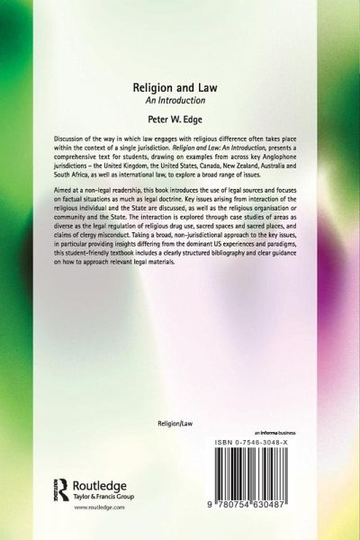 Discussion of the way in which law engages with religious difference often takes place within the context of a single jurisdiction. Religion and Law: An Introduction, presents a comprehensive text for students, drawing on examples from across key Anglophone jurisdictions - the United Kingdom, the United States, Canada, New Zealand, Australia and South Africa, as well as international law, to explore a broad range of issues. Aimed at a non-legal readership, this book introduces the use of legal sources and focuses on factual situations as much as legal doctrine. Key issues arising from interaction of the religious individual and the State are discussed, as well as the religious organisation or community and the State. The interaction is explored through case studies of areas as diverse as the legal regulation of religious drug use, sacred spaces and sacred places, and claims of clergy misconduct. Taking a broad, non-jurisdictional approach to the key issues, in particular providing insights differing from the dominant US experiences and paradigms, this student-friendly textbook includes a clearly structured bibliography and clear guidance on how to approach relevant legal materials.