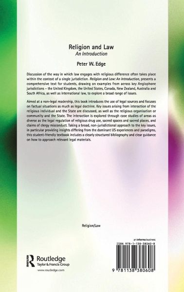 Discussion of the way in which law engages with religious difference often takes place within the context of a single jurisdiction. Religion and Law: An Introduction, presents a comprehensive text for students, drawing on examples from across key Anglophone jurisdictions - the United Kingdom, the United States, Canada, New Zealand, Australia and South Africa, as well as international law, to explore a broad range of issues.